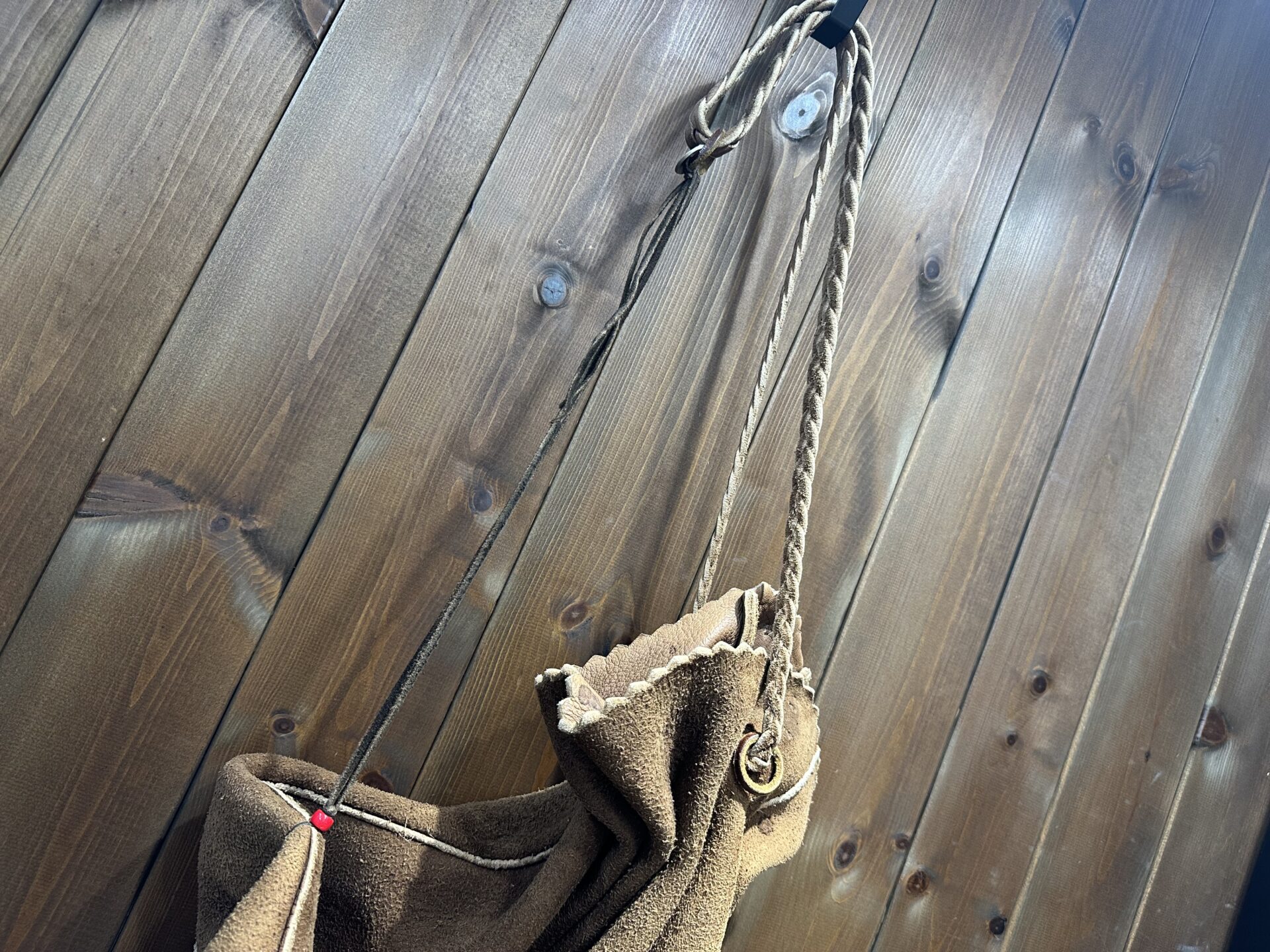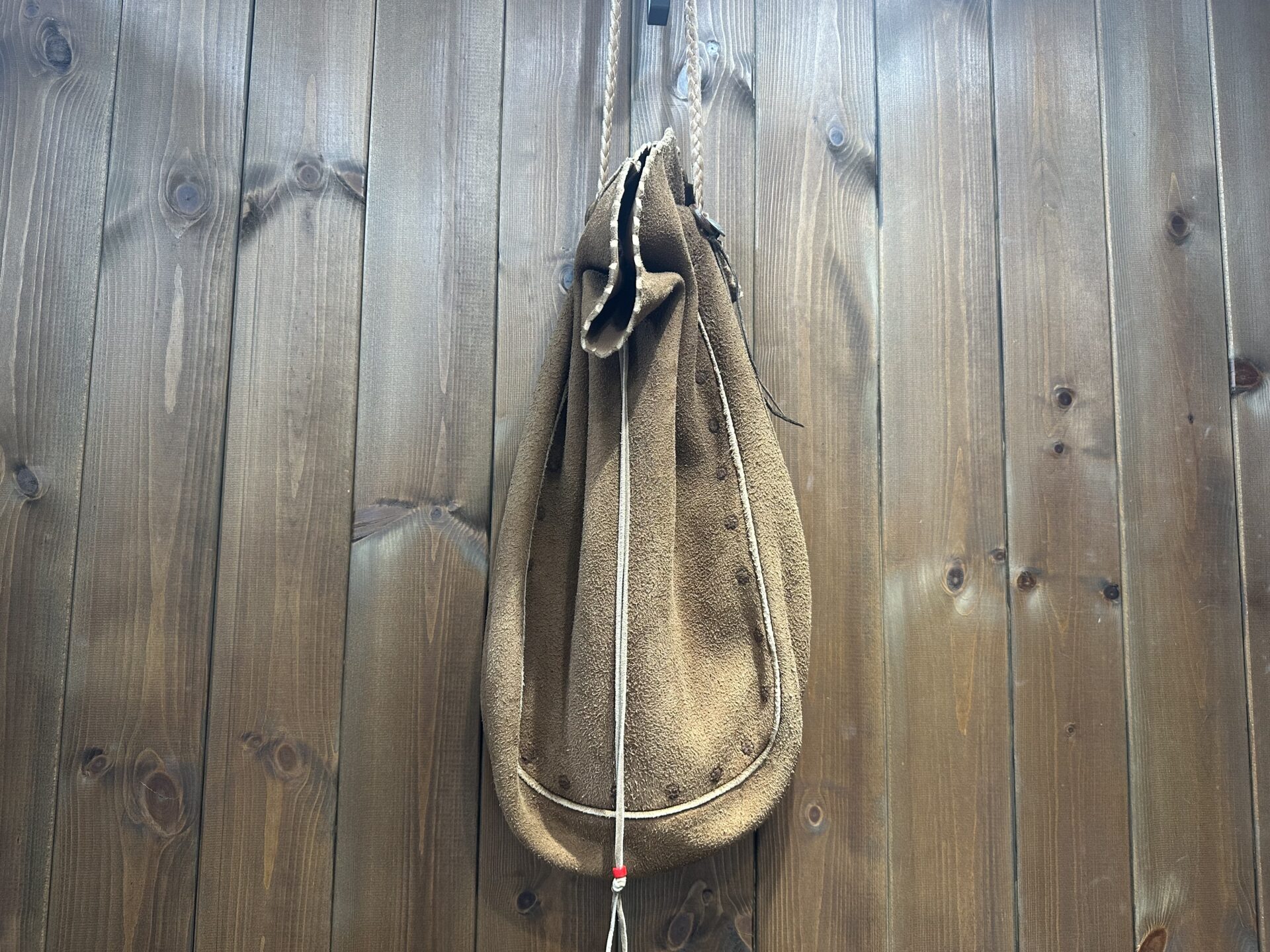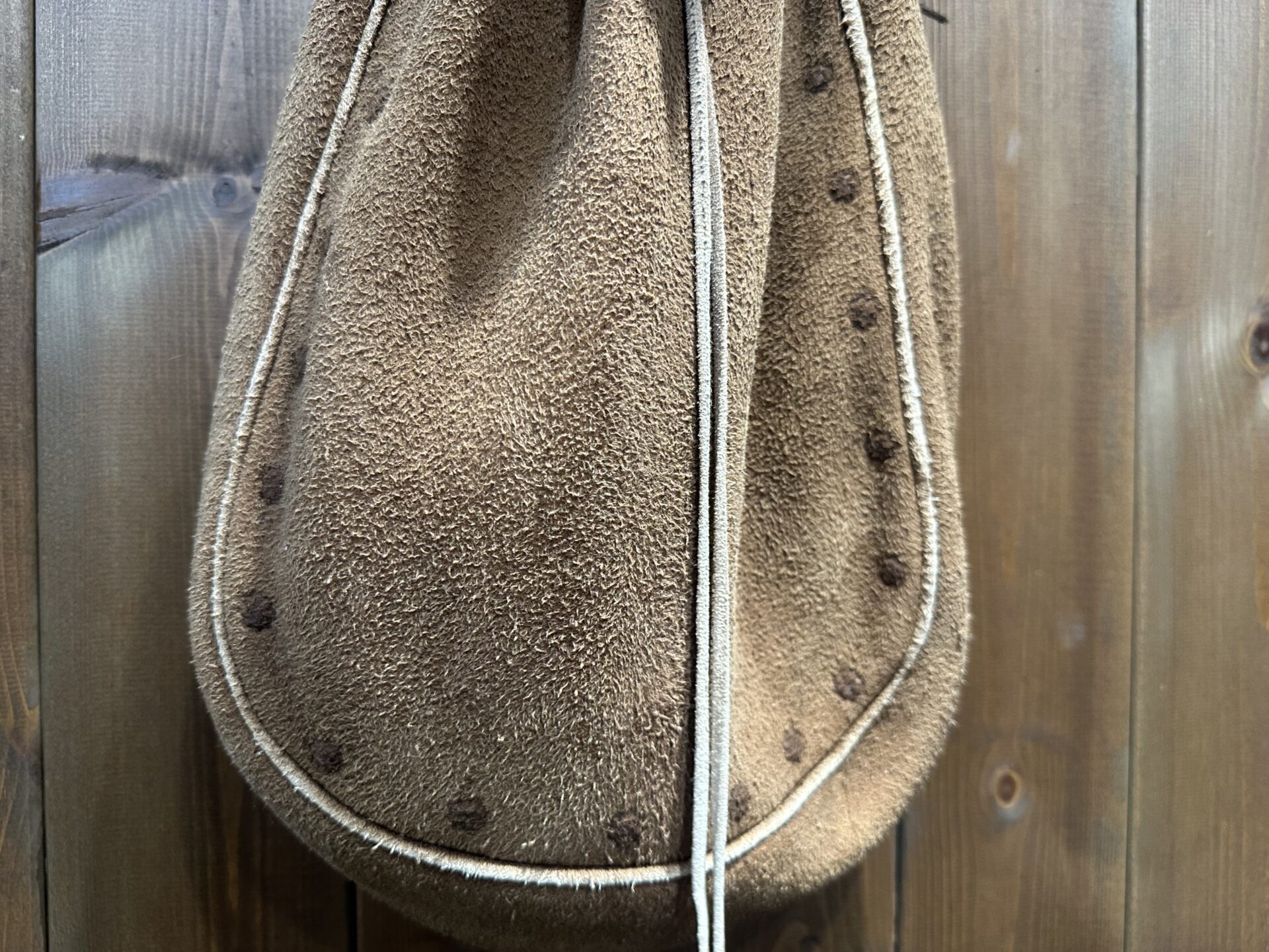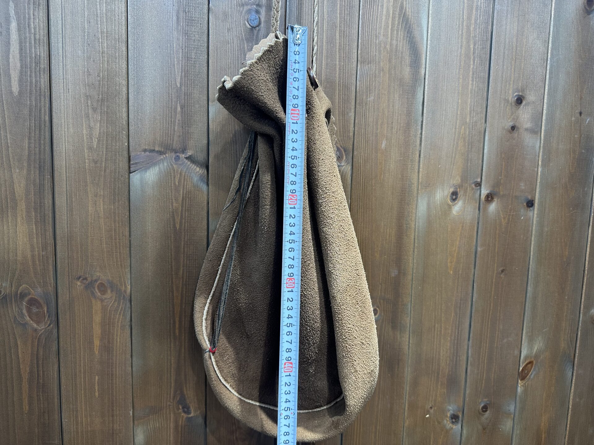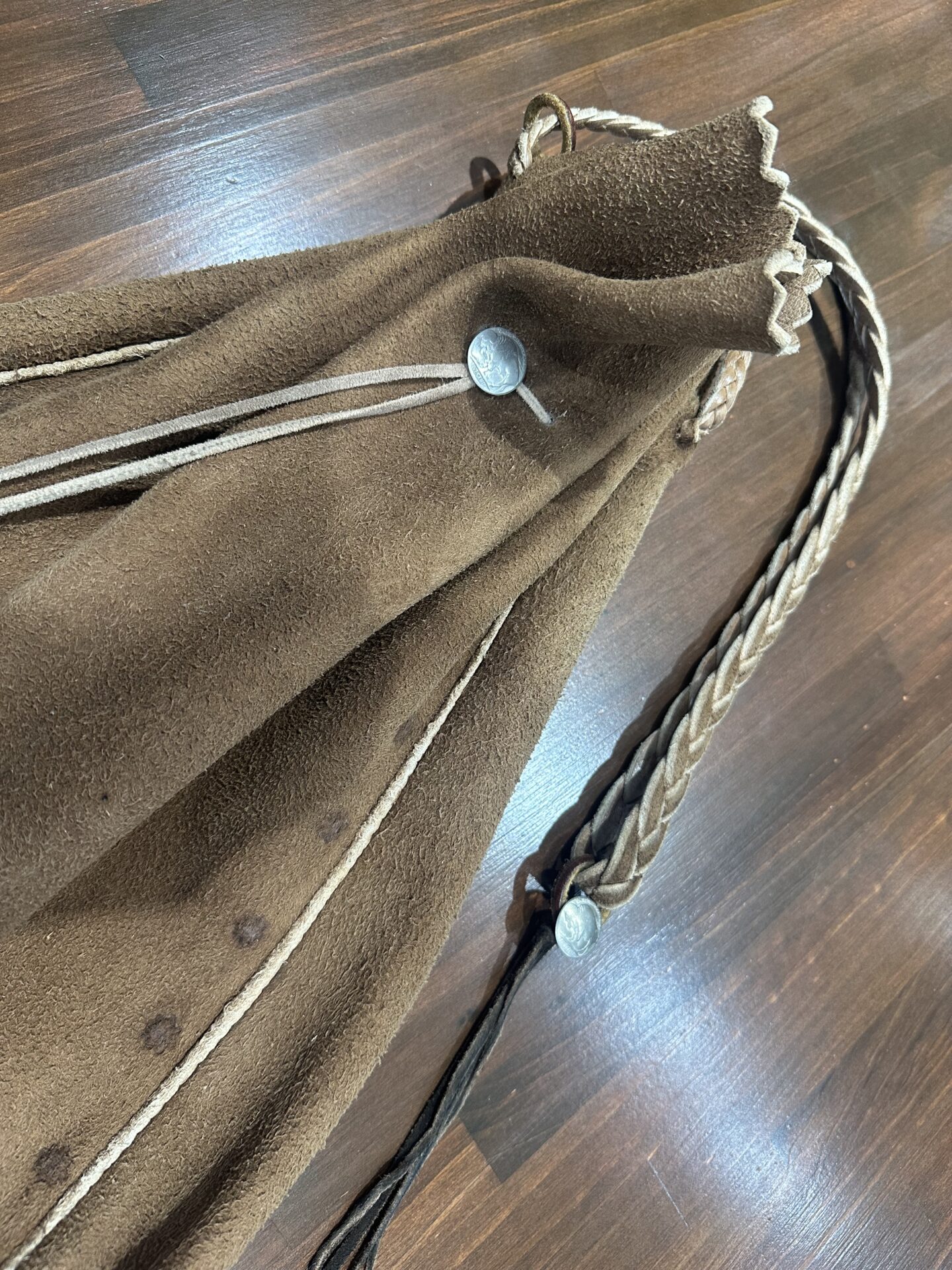 NEW 中古品状態考慮価格 巾着バッグ (L) 焦げ茶 ※タスキ掛け コンチョ穴跡有りの為格安出品