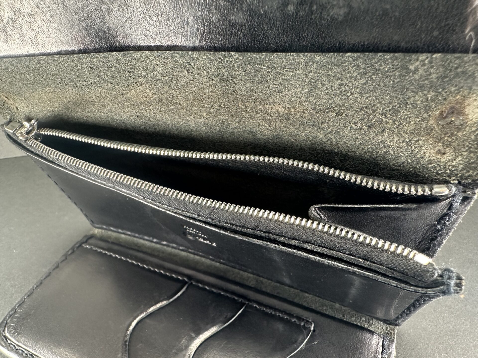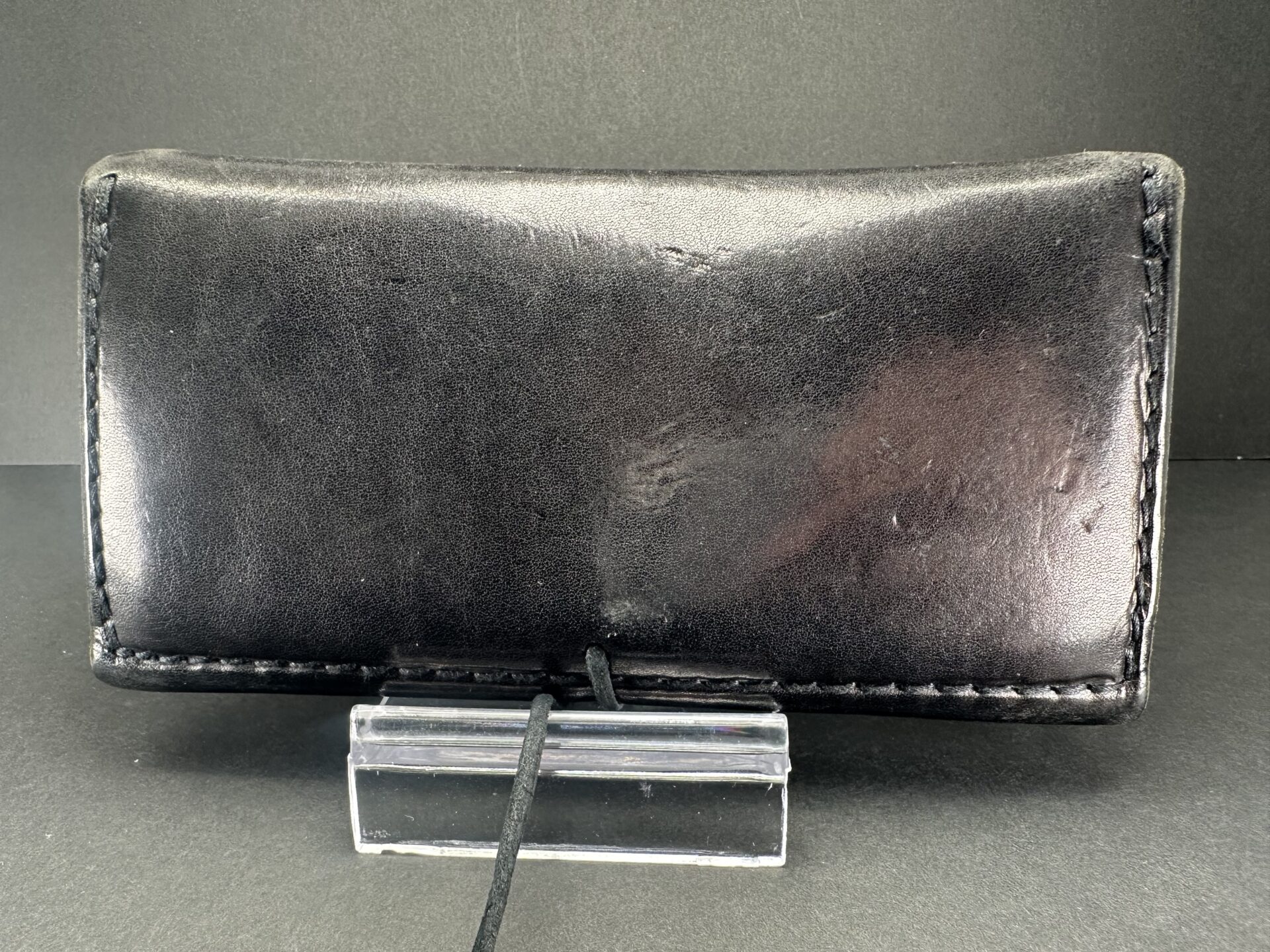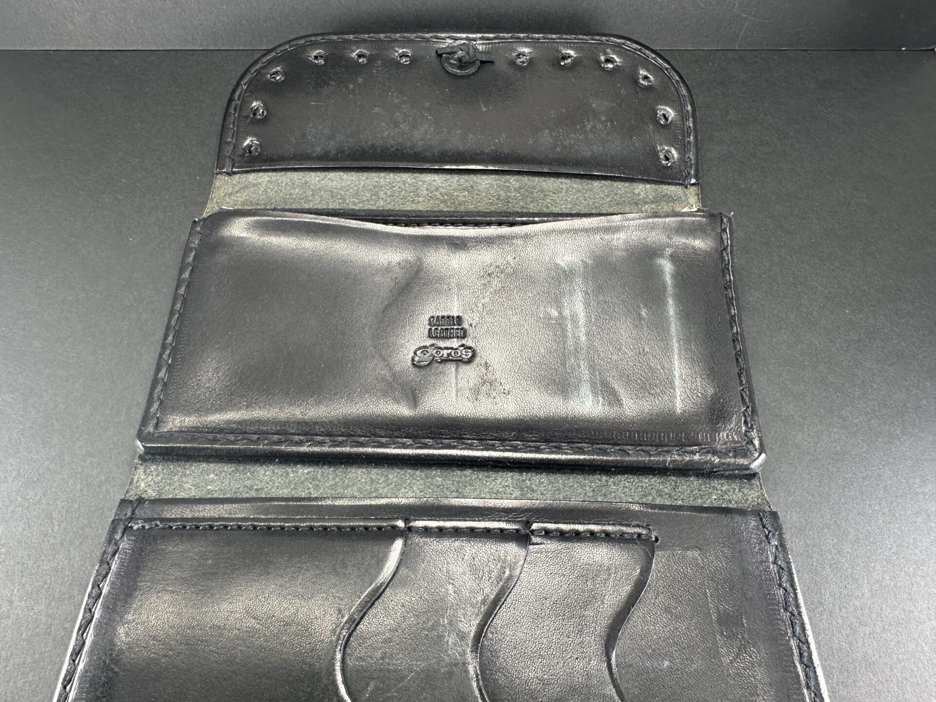 状態考慮価格 三つ折り長財布 (黒) ※コンチョ穴跡有りの為格安出品