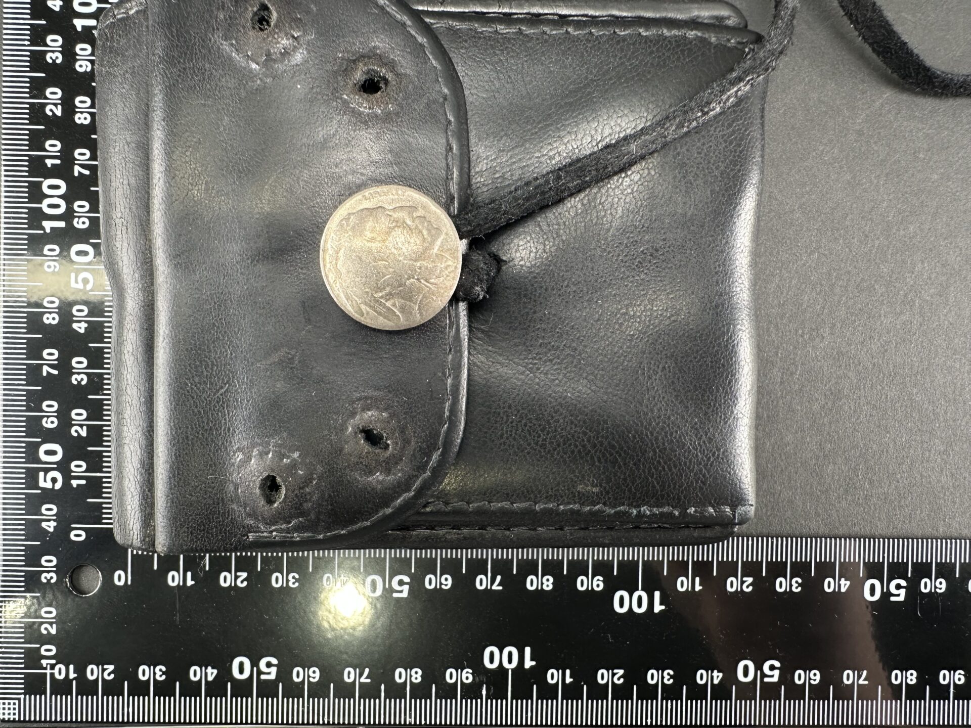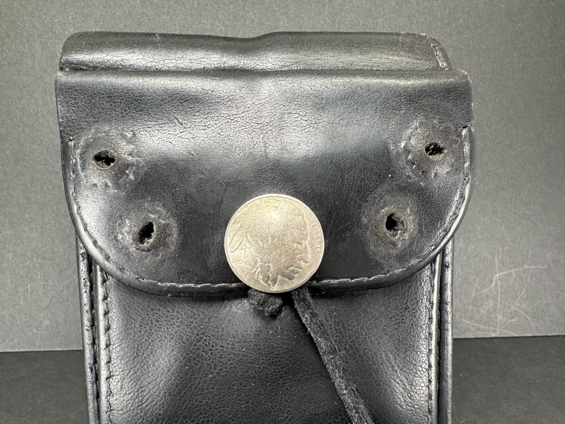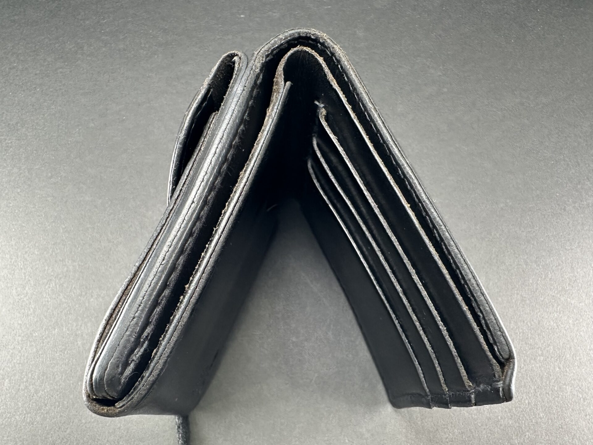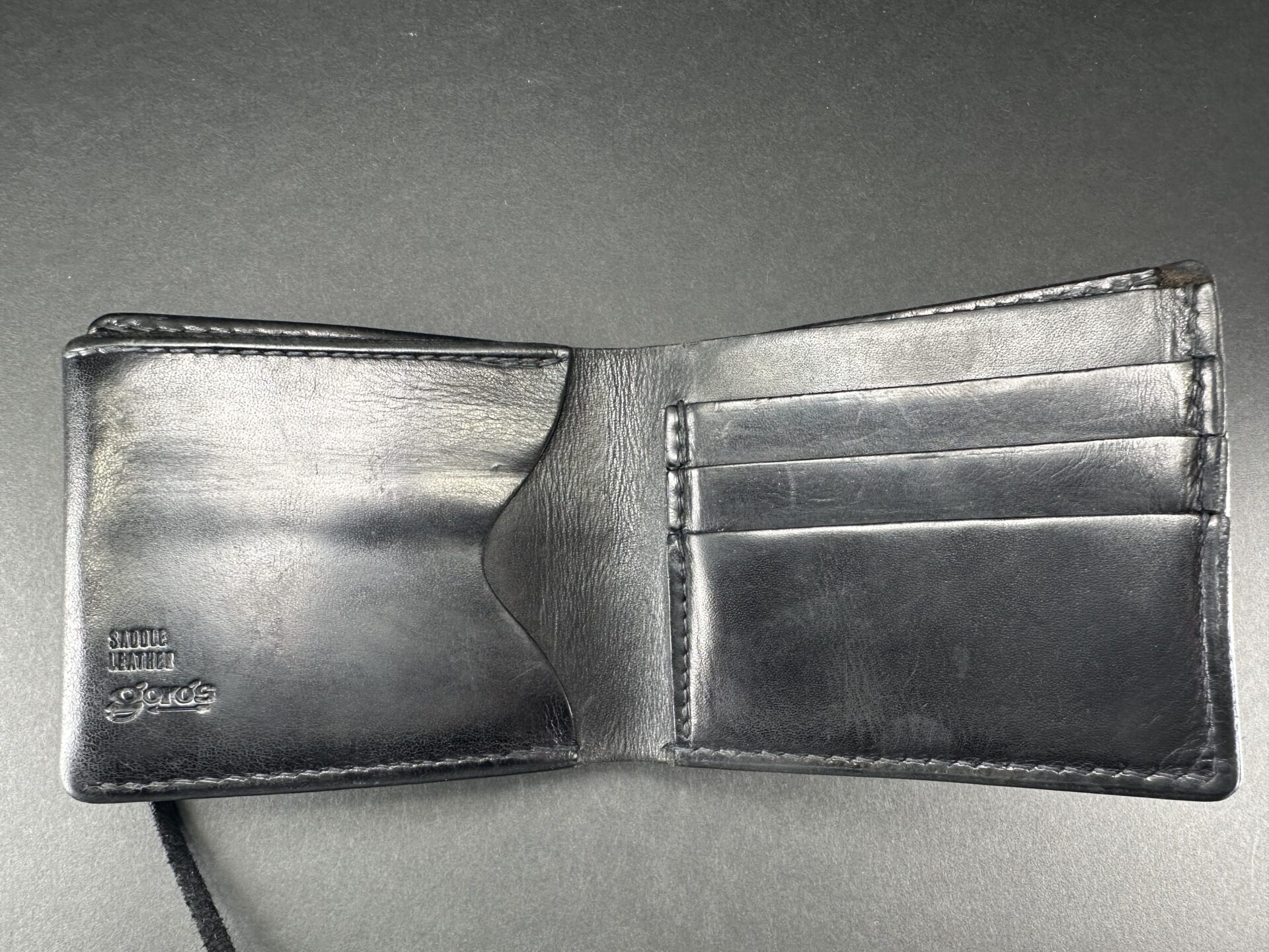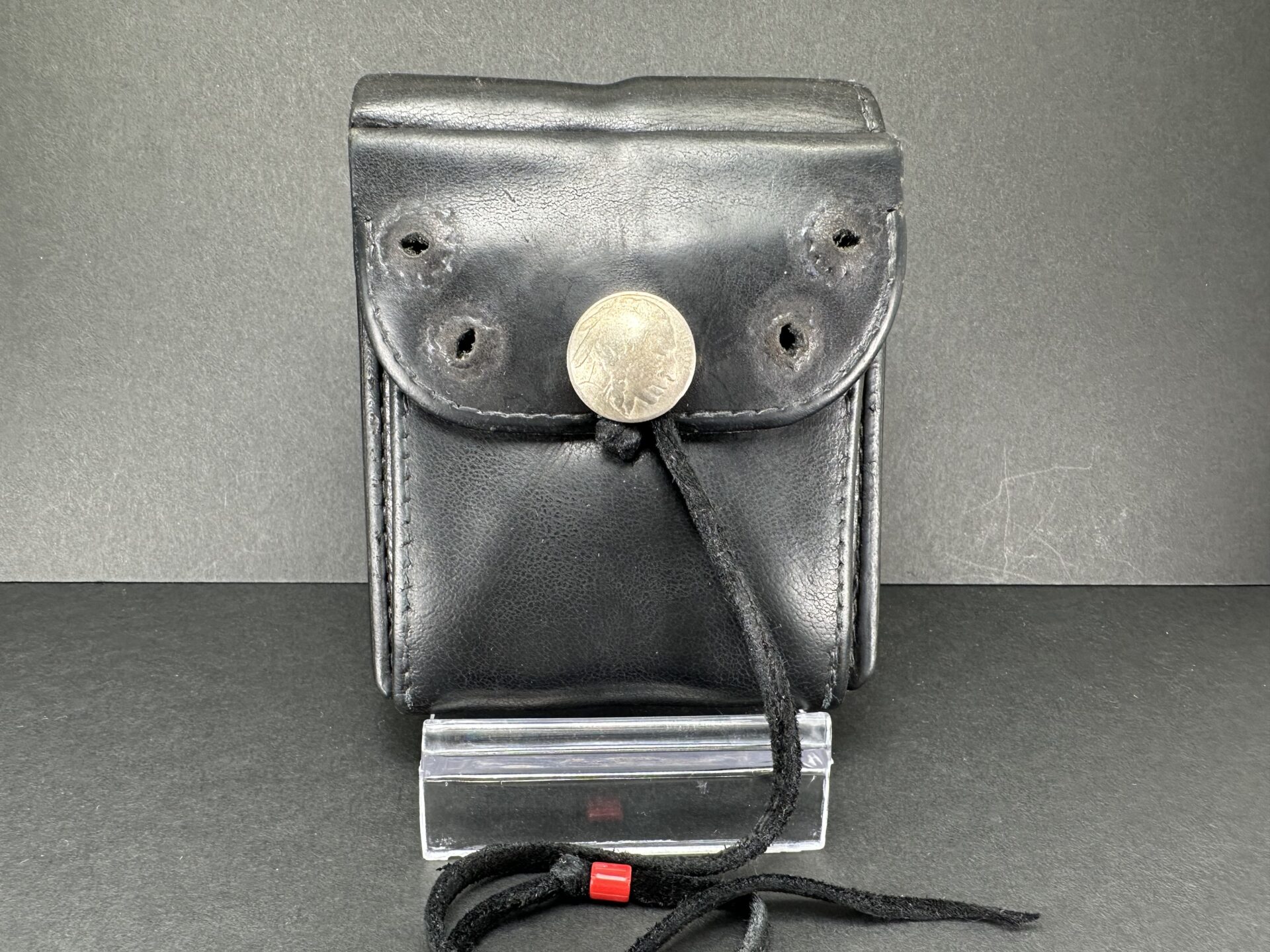 中古品状態考慮価格 二つ折り財布 (黒) ※コンチョ穴跡有り